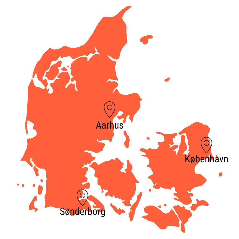 De forskellige lokationer er tæt forbundet i det daglige arbejde, og samarbejdet på tværs gør det muligt at dele viden, sparre og løse opgaver sammen – uanset om arbejdet foregår fra kontoret eller digitalt.